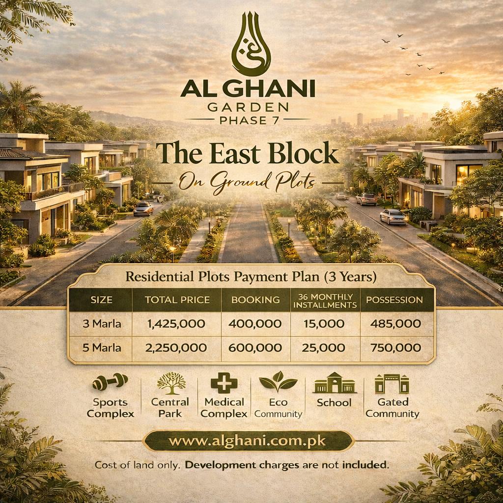 Al Ghani Garden Phase 7 - The East Block - On Ground Plots