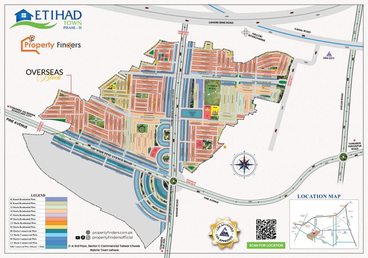 Etihad Town Phase 2 occupies a highly accessible location near Raiwind Road, connected through the Halloki Interchange and Ring Road Lahore. Its close proximity to Ferozepur Road, Thokar Niaz Baig, and Lake City ensures excellent accessibility from all major parts of Lahore. The development of Pine Avenue as a 150-foot-wide commercial corridor further enhances the visibility and business potential of the project.This strategic positioning makes Etihad Town Phase 2 a future hotspot for commercial activities, benefiting from steady residential population growth and increasing visitor traffic