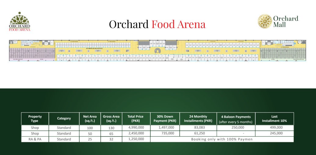 From 200+ shops, an Orchard Food Arena, kids play areas, a wedding arena, and an IT market to hotel apartments and co-working spaces, it’s a complete commercial and lifestyle hub. - Is the Orchard Food Arena suitable for food businesses?